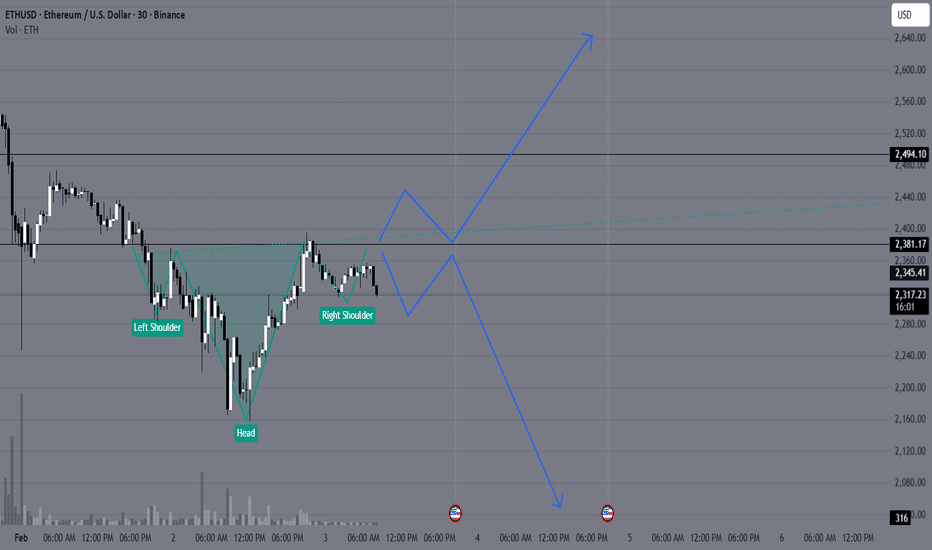 ETHUSD at a crucial support Forming Head and shoulder pattern✅ Pattern Forming: Inverse Head & Shoulders (Early Stage)