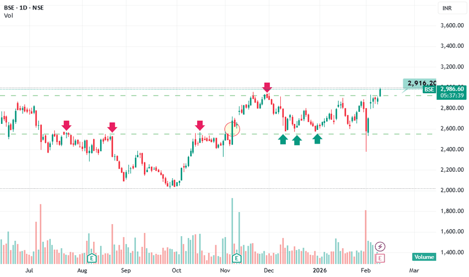 BSE has broken out of a horizontal range on daily chart BSE has broken out of a horizontal range on daily chart. On higher timeframes it is trading near previous high, thatโs a structural bullish signal, not just noise. ๐ฅ
