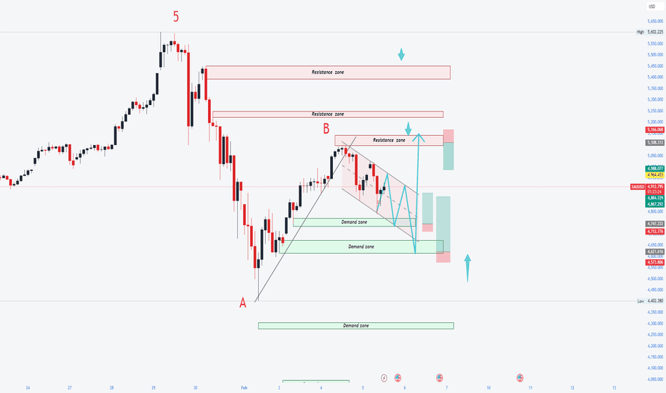 XAUUSD / GOLD โ 1H SELL PROJECTION (05-02-2026)