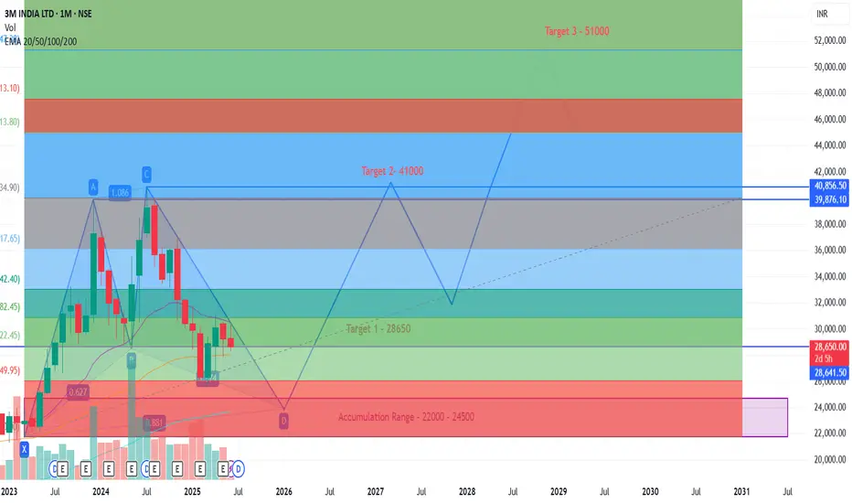 3M India is bearish currently on Monthly chart and seems will be bearish till end of year. Currently making a harmonic pattern. Will turn bullish my start of 2026.