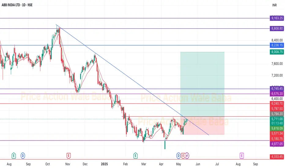 Stock is trading near trendline and above the breakout we can see target levels of 7500-8000.
