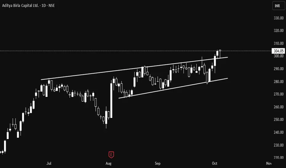 Channel breakout with 3 rejections on the daily chart. Took an entry at 304 post-confirmation with strong volume support with SL near 296.