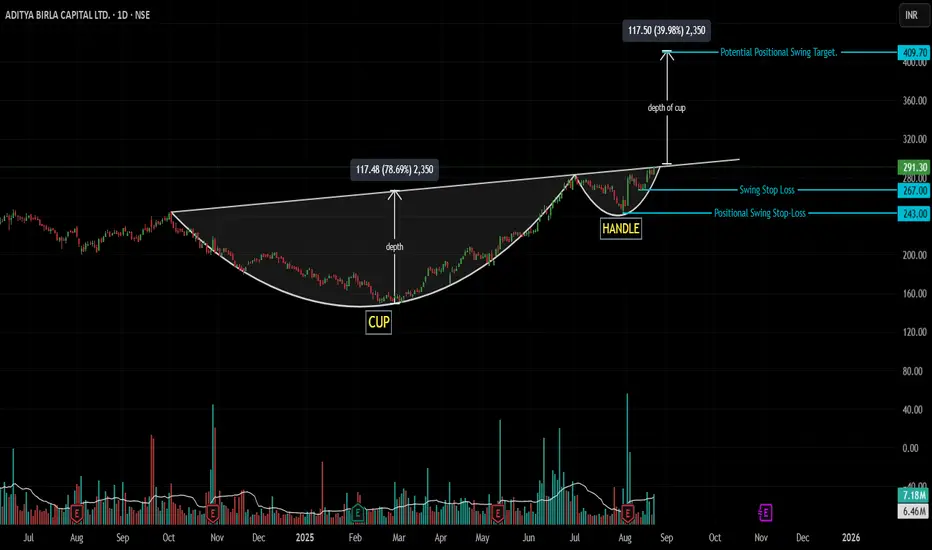 Script: NSE:ABCAPITAL | Timeframe: Daily | Pattern: Cup and Handle | Idea: Swing/Positional