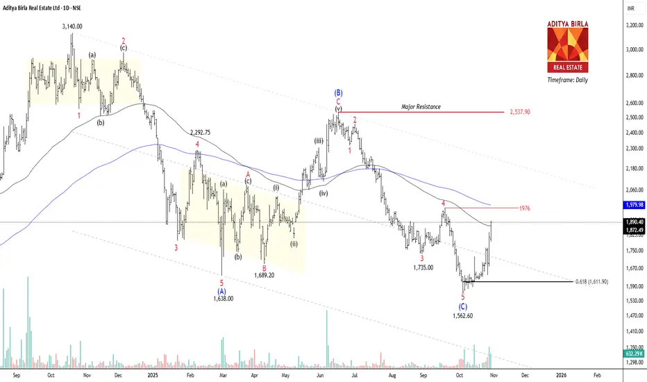 NSE ABREL has constructed a corrective A-B-C formation on the daily timeframe chart. The price has fallen 50% from the all-time high of 3410 within 13 months. Wave (B) occurred at 2537.9, where Wave (c) completed the 5-wave cycle at 1635. If the price breaks and closes above 1976, traders can buy for the following targets: 2080 – 2140 – 2185+.