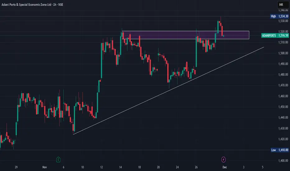 Adani port (1516.5) has on crucial support and near trendline support. It became weak only below 1510