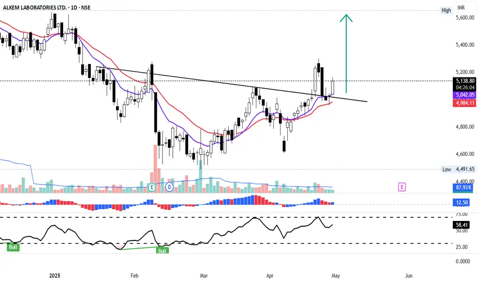 Alkem Labs broke the neckline of Inverted Head and Shoulder on the daily chart, retested the neckline and it is looking good for a decent run. The HNS target comes to Rs.5616, which is a good 11.29% from the CMP of Rs. 5146.