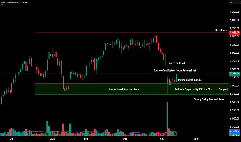 Sector: Consumer Durables | CMP: 7376 | View: Early Reversal Attempt Inside Downtrend Structure