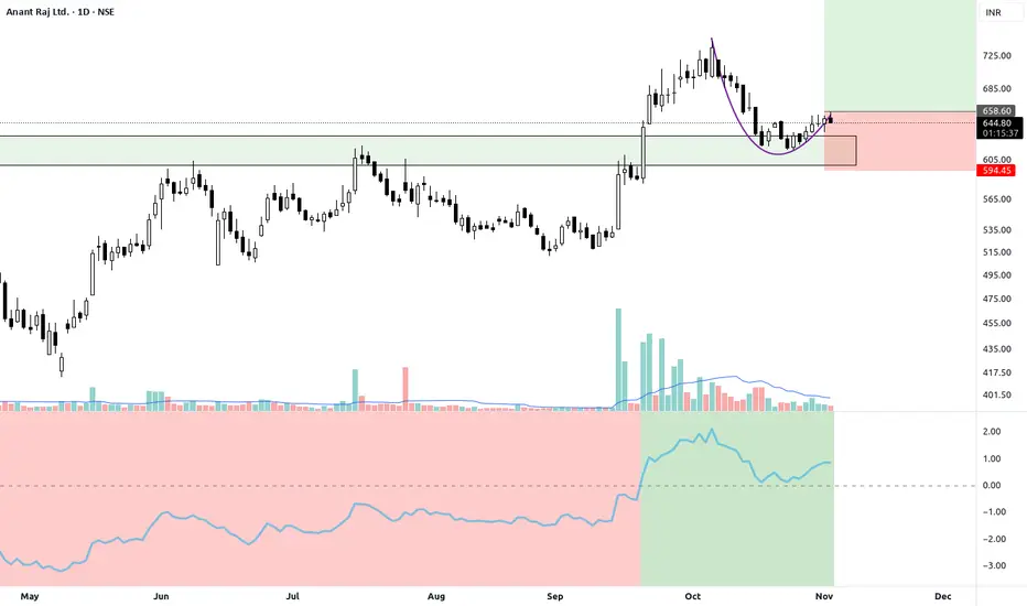 • Stop Loss (Risk Management): A clear, objective stop loss should be placed just below the retested support zone, for example, around ₹580 - ₹600. This defines a tight, low-risk setup.