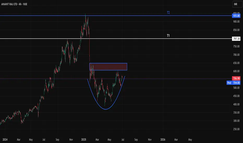 Hello folks! Here is the 4H time frame chart of anantraj which shows a rounding bottom consolidation pattern forming after a steep news driven downtrend. Volumes have nicely picked up in the accumulation phase.
