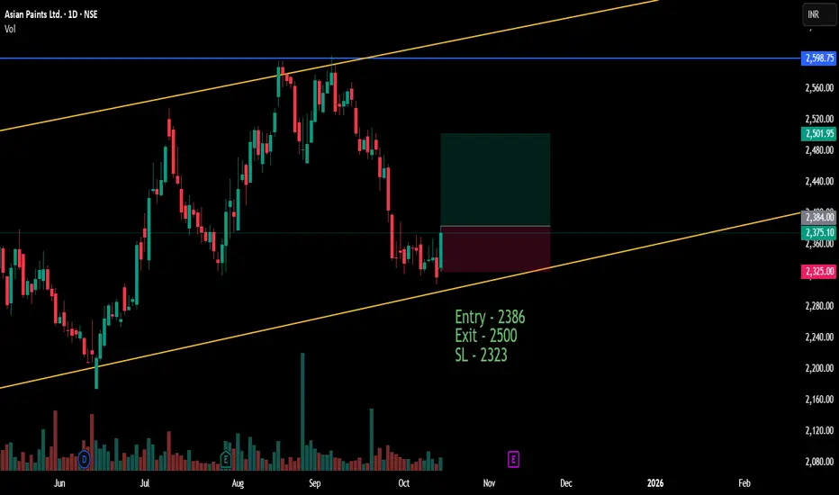 As mentioned in my previous shared idea about Asianpaint, I was waiting for a candlestick pattern for a buy confirmation. My trade would be -