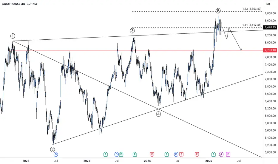 In this entire rally of NIFTY towards the downside since few months, BAJFIN has acted in a defensive way for the time being. But currently a Bearish Wolfe Wave pattern is emerging in the stock indicating that the stock can show a potential downside.