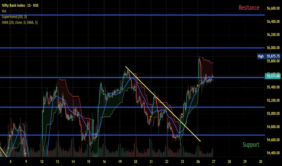 Index has resistance near 56000 – 56100 range and if index crosses and sustains above this level then may reach near 56500 – 56600 range.