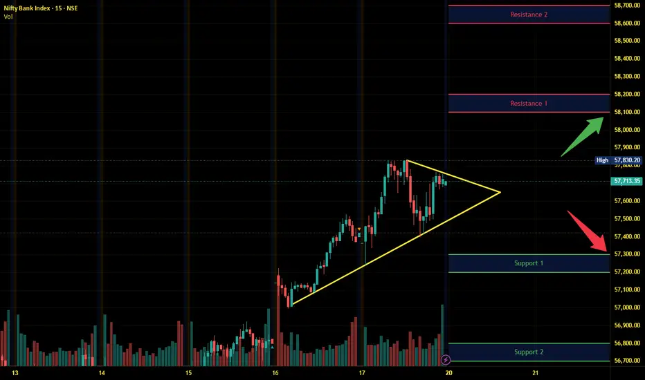 Banknifty has immediate support near 57300 - 57200 range and if this support is broken then index may tank near 56800 - 56700 range.