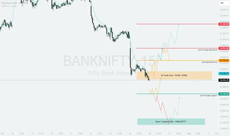 🎯 Key Decision Zone: 54,428 – 54,562 (No-Trade Zone) will guide the trend.