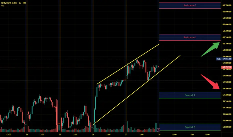Banknifty has immediate support near 59350 - 59250 range and if this support is broken then index may tank near 58850 - 58750 range.