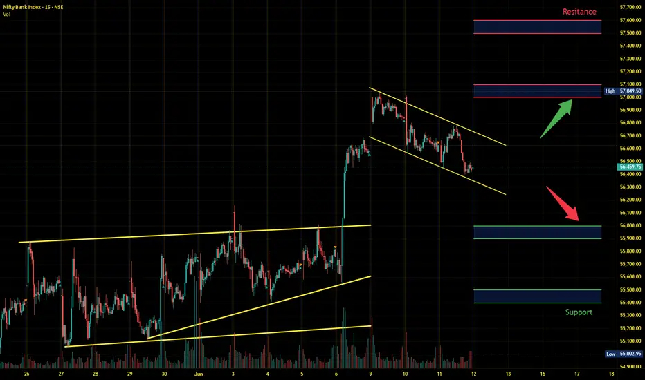 Banknifty has immediate support near 56000 - 55900 range and if this support is broken then index may tank near 55500 - 55400 range.