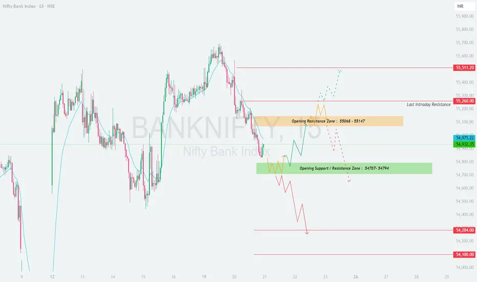 🟢 Wait and observe for the first 30 minutes. If Bank Nifty begins to trend upward with strong bullish candles, then 55,068–55,147 becomes the crucial breakout zone to watch for intraday longs.