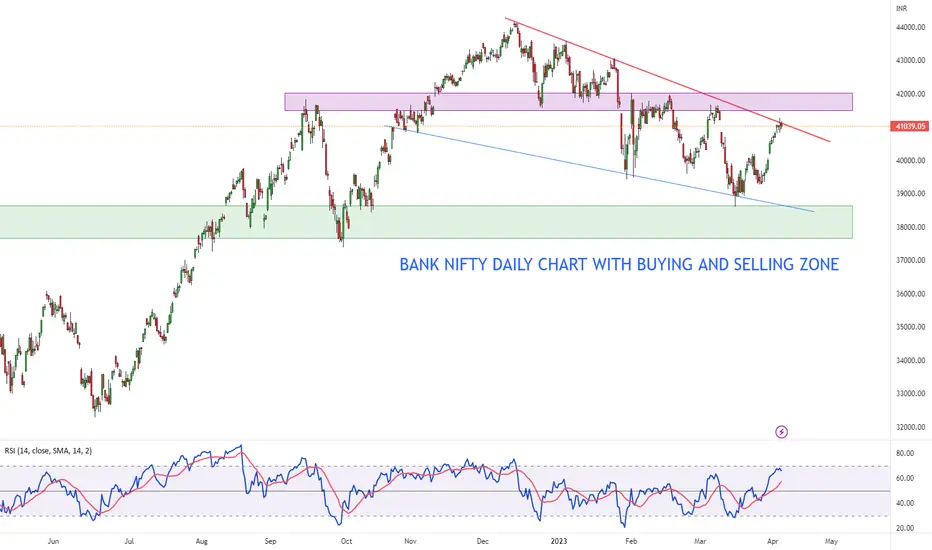 Bank nifty daily chart with trend line , buying zone and selling zone for medium to long term horizon