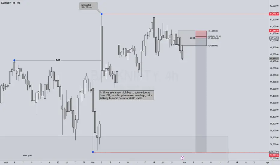 According to weekly planning, price seems to be manipulating above weekly highs. So we are planning a sell-side trade. 4h structure made HH creating a new high but the overall structure doesn't have any IDM, so most likely price will come down to sweep the 4h/weekly lows. The probable setup have been mapped on chart.