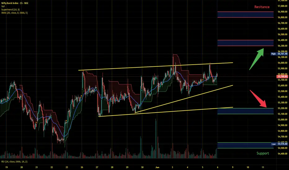 Banknifty has immediate support near 55200 - 55100 range and if this support is broken then index may tank near 54600 - 54500 range.