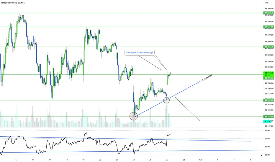As per the study let it close above today's high and give a HL confirmation for a trend change on a 15 mins time frame.