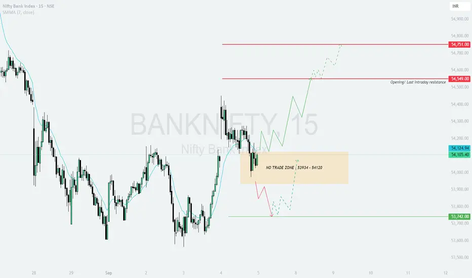 🟧 Flat Opening in No Trade Zone (53,934 – 54,120) → Wait for breakout before entry.