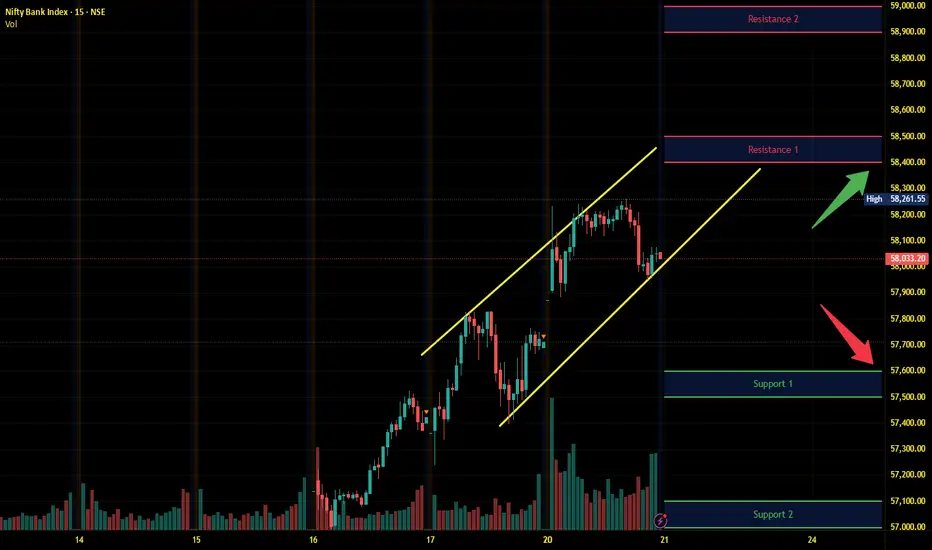 Banknifty has immediate support near 57600 - 57500 range and if this support is broken then index may tank near 57100 - 57000 range.