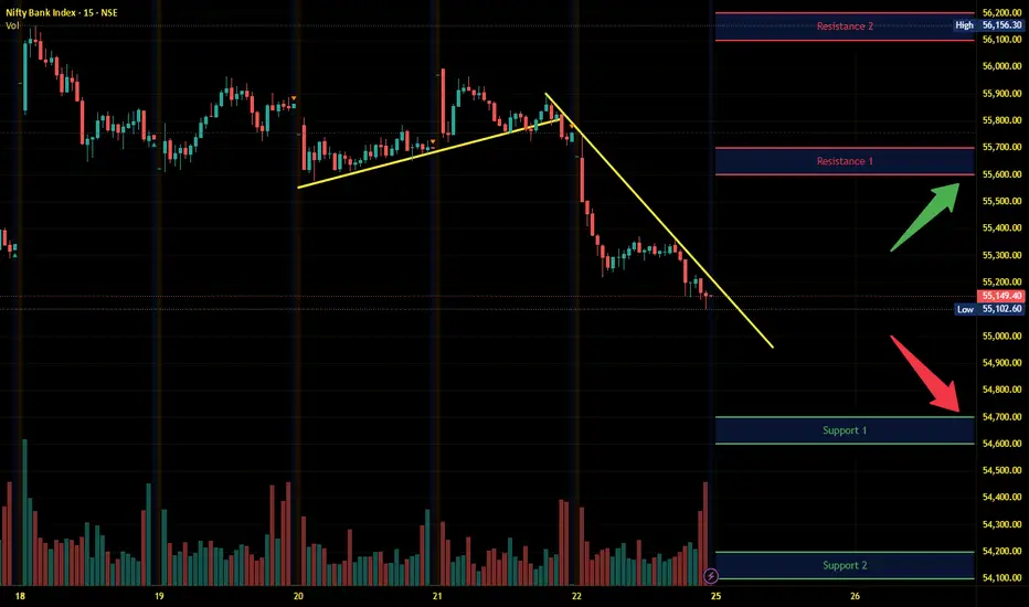 Banknifty has immediate support near 54700 - 54600 range and if this support is broken then index may tank near 54200 - 54100 range.
