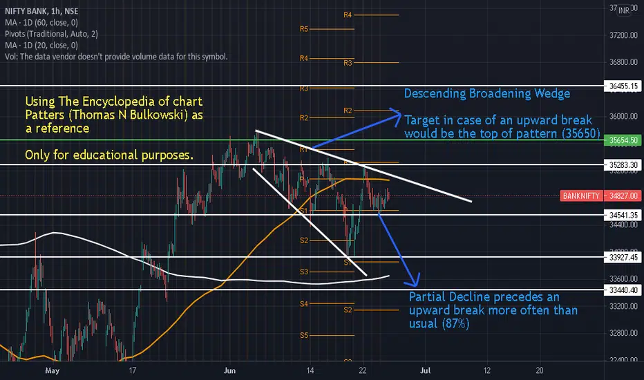 - Target in case of a breakout on the upper side would be the top of the pattern which is 35650.
