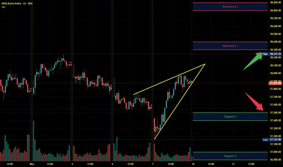Banknifty has immediate support near 57500 - 57400 range and if this support is broken then index may tank near 57000 - 56900 range.