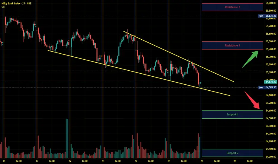 Banknifty has immediate support near 54600 - 54500 range and if this support is broken then index may tank near 54100 - 54000 range.
