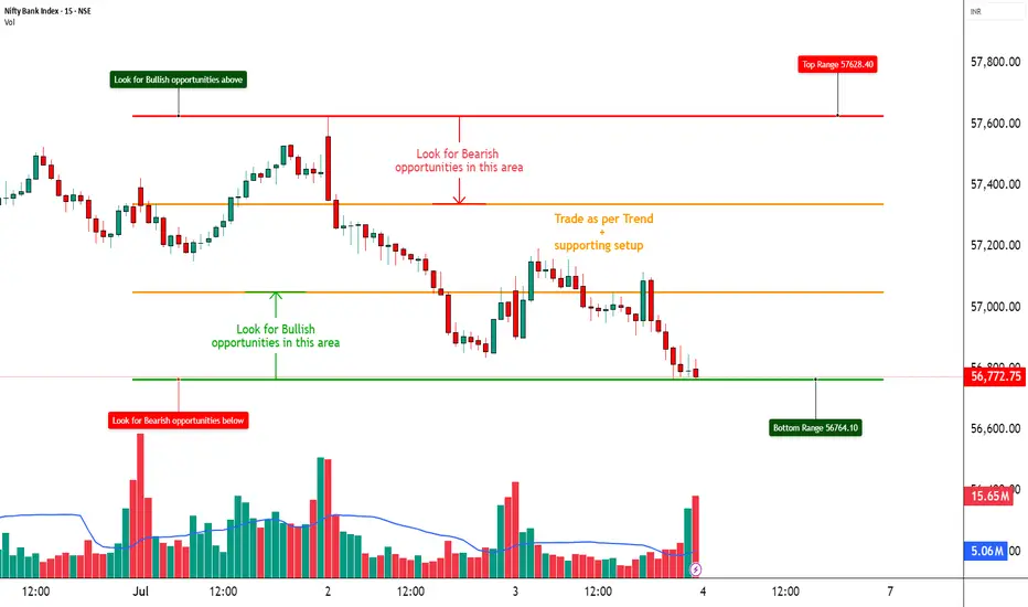 There is a visible and well-established supply zone between ₹57,400 and ₹57,600, which has consistently capped upside attempts. On the downside, the ₹56,770 support is showing signs of exhaustion due to repeated tests. Derivative data continues to favor the sellers, with strong bearish positioning in the option chain. As there is no visible sign of a reversal yet, it's prudent to remain cautious on taking any premature long positions.
