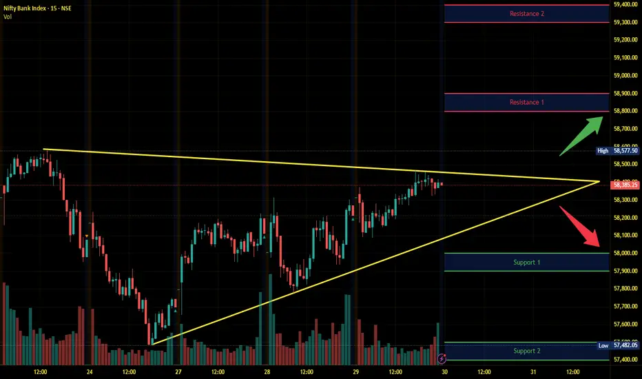 Banknifty has immediate support near 58000 - 57900 range and if this support is broken then index may tank near 57500 - 57400 range.