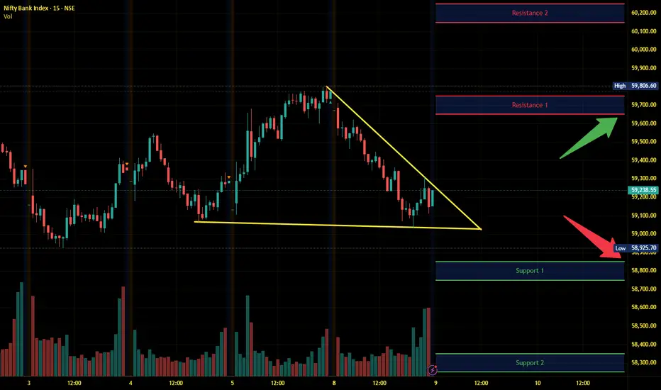 Banknifty has immediate support near 58850 - 58750 range and if this support is broken then index may tank near 58350 - 58250 range.