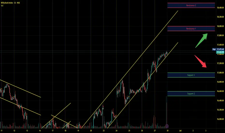 Banknifty has immediate support near 57000 - 56900 range and if this support is broken then index may tank near 56600 - 56500 range.