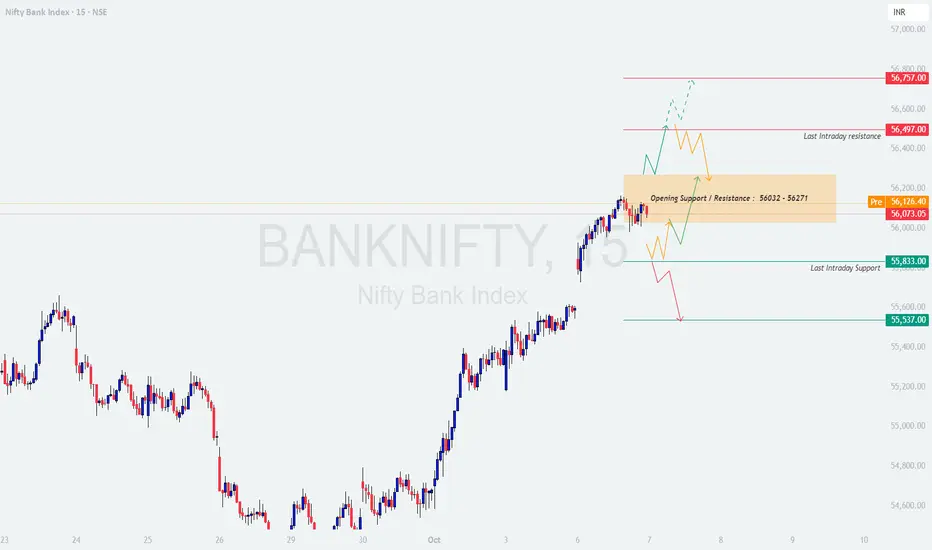 - [] If Bank Nifty opens above 56,271, it will likely attempt to test the Last Intraday Resistance at 56,497.