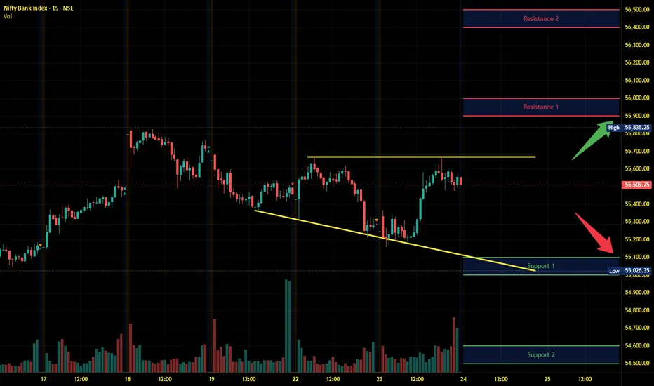 Banknifty has immediate support near 55100 - 55000 range and if this support is broken then index may tank near 54600 - 54500 range.