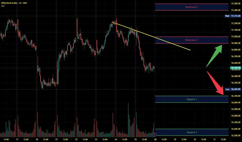Banknifty has immediate support near 56100 - 56000 range and if this support is broken then index may tank near 55600 - 55500 range.