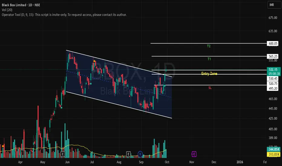Price has broken above its short-term resistance zone around ₹520–530, which was repeatedly tested in September.
