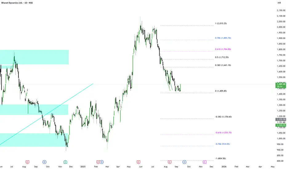 BDL is in base formation and RSI gave a fresh Breakout today. Keep it in watchlist or enter with a small SL 1400 with some buffer.