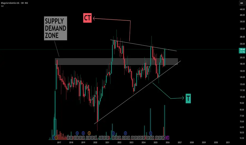 - Pattern Context: A large symmetrical triangle is forming above this zone, highlighting sustained equilibrium between buyers and sellers, and price compressing within clearly defined boundaries.