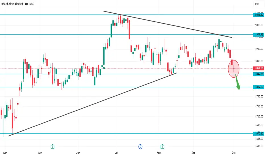 At ₹1,867, Airtel is just above immediate support (₹1,840–1,850).