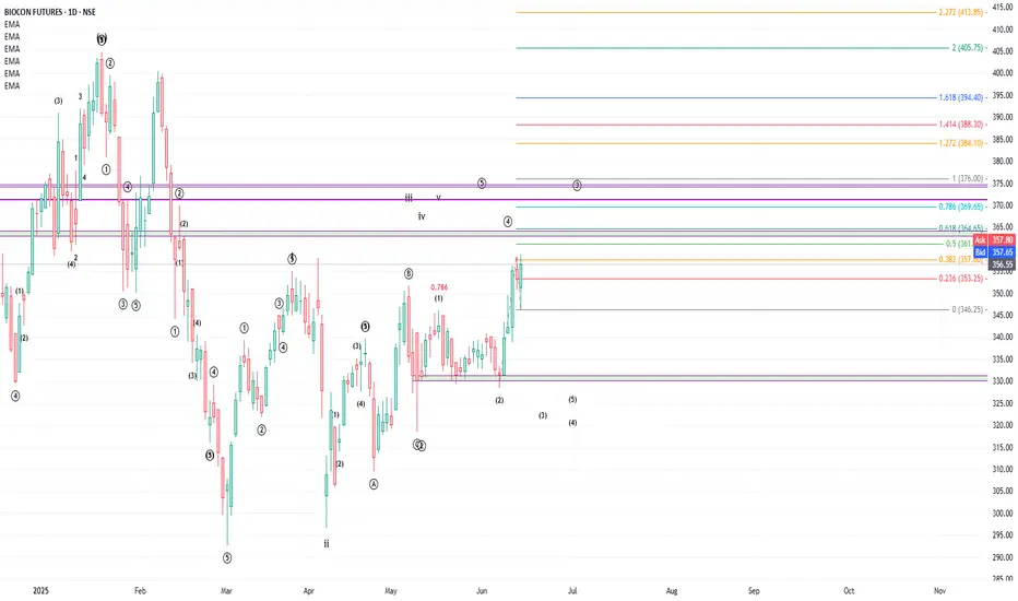 Biocon completed its last major corrective structure as a "Flat" after completion of impulse move.