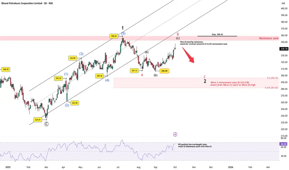 BPCL– Wave B Nearing Resistance, Wave 2 Correction Still in Play
