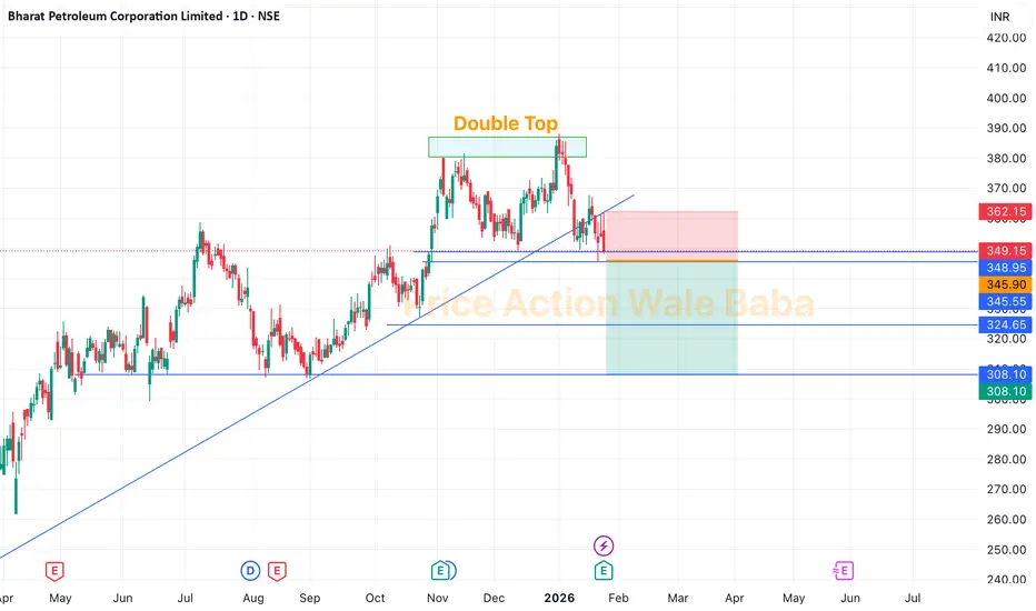 BPCL is forming a Double Top which is has neckline of 345.