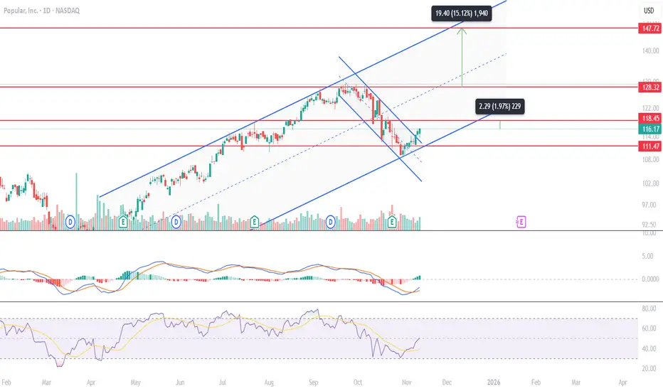 Today's (12-11-2025) Price Target of Popular Inc. is nearly $118.45 from the previous day close which is nearly 1.97% return.