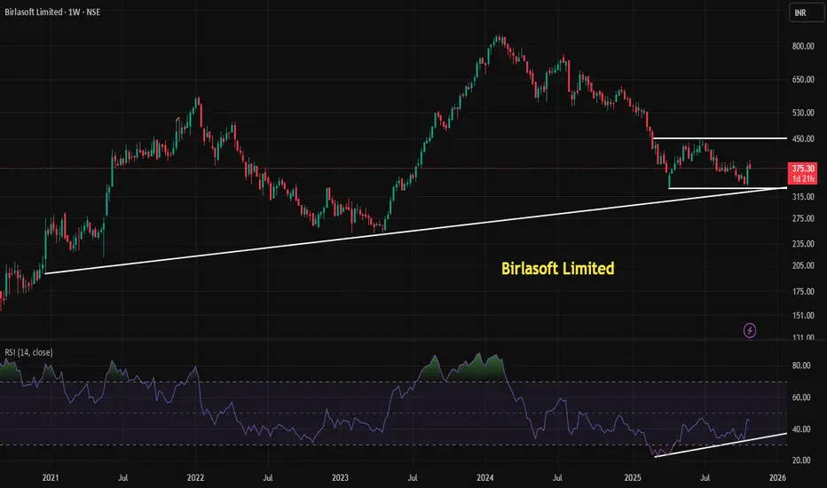 Birlasoft Ltd. is showing a bullish technical setup with a double bottom pattern and RSI positive divergence on the weekly chart, suggesting a potential trend reversal from recent lows.