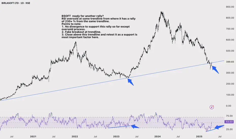RSI oversold at same trendline from where it has a rally of 230+ % from the same trendline.