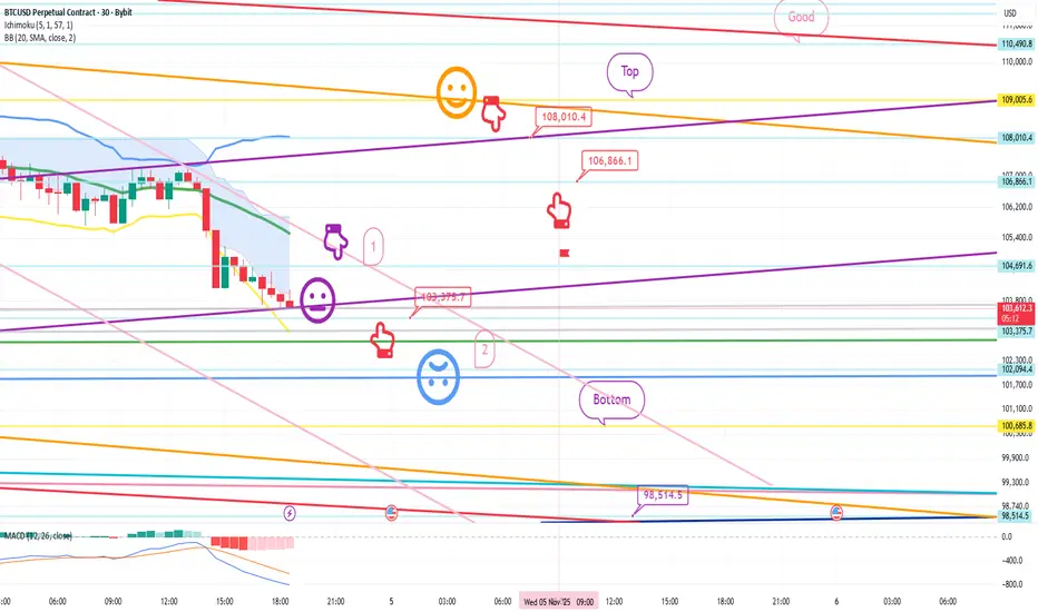 2. $108,010.4 long position primary target -> Target prices are set at Top, then Good in that order. If the strategy is successful, 106.8K will be the point where you can re-enter a long position.