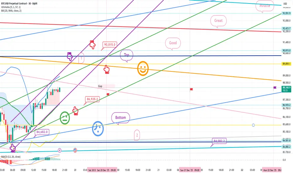 1. Touch the first point of the purple finger at the top, or even if it doesn't, the red finger indicates the long position entry point at $86,935.2. Stop-loss price if the green support line is broken.